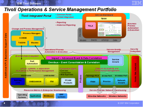 我们使用IBM Tivoli软件作为管理平台来实施。IBM Tivoli的产品线参见下图: